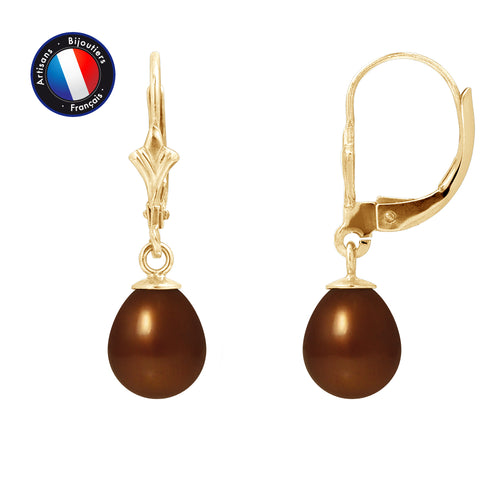 PERLINEA- Boucle d'Oreilles- Perles de Culture d'Eau Douce- Diamètre 8-9 mm Black Tahiti- Bijou Femme- OrJaune -
